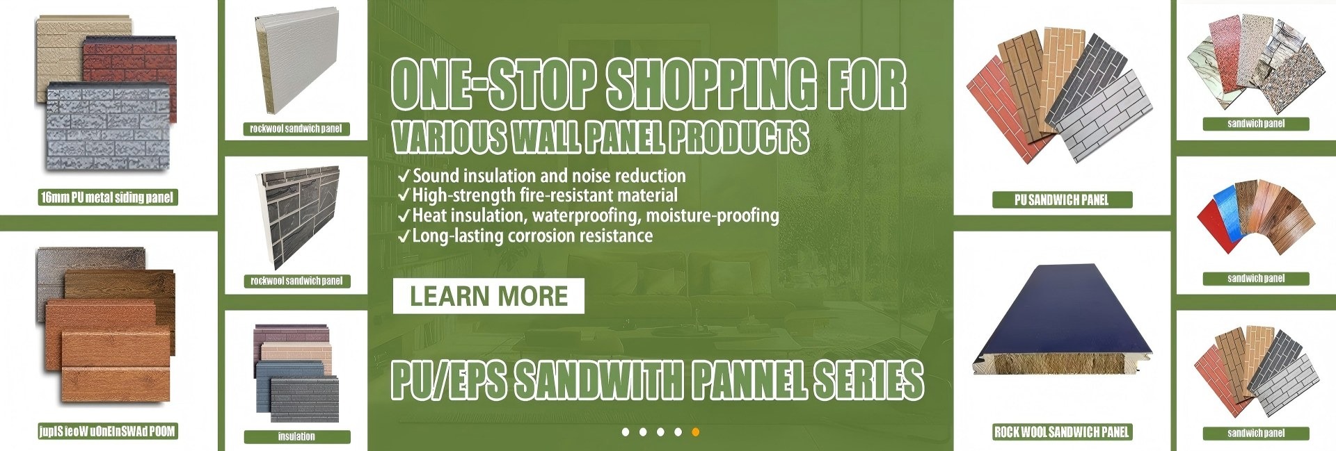 Productos principales:Panel de pared de espuma PU, panel de pared, panel de sándwich de poliestireno EPS, paneles de sándwich de lana de roca, revestimiento de pared